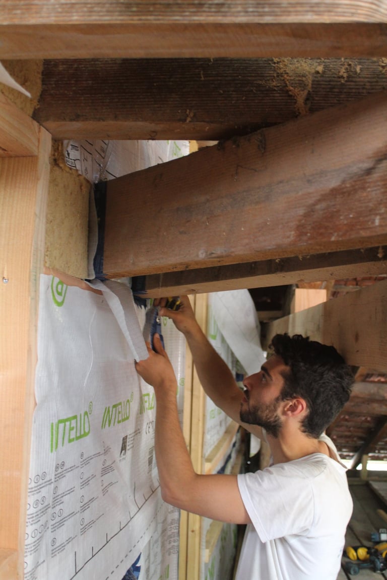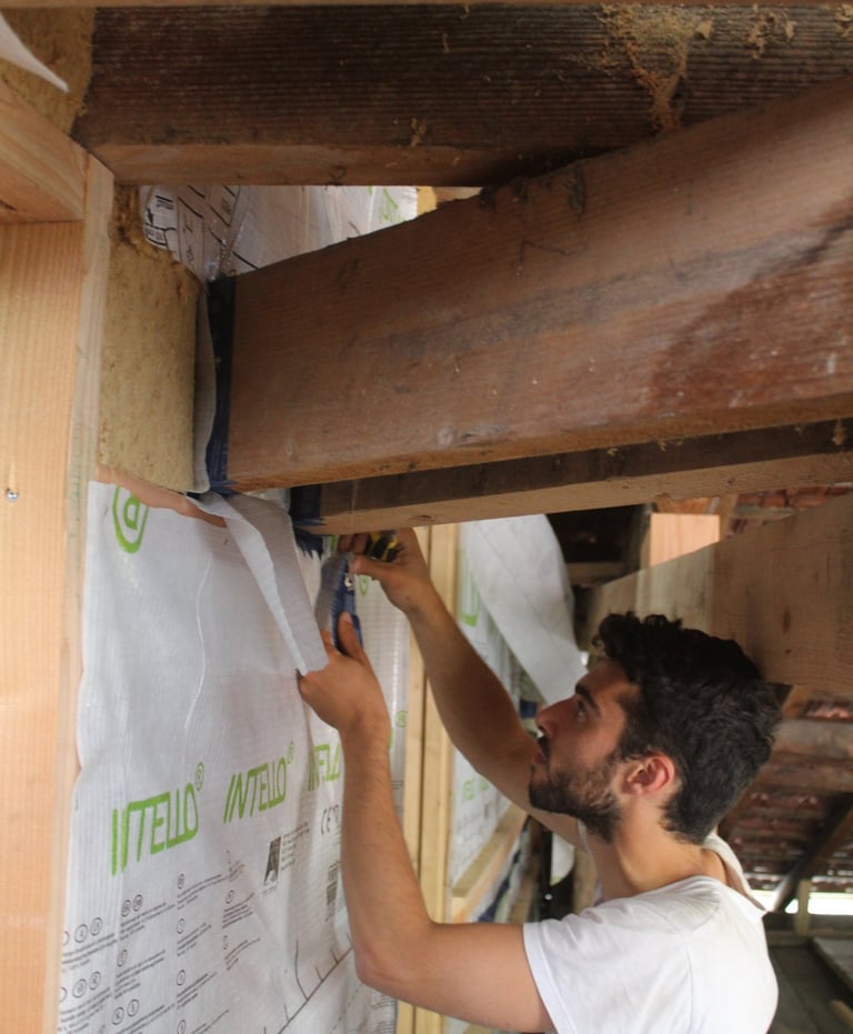 J'ai également participé à une formation d'un an en alternance à Chambéry en compagnie d'un artisan qui réalisait des isolations par l'extérieur en fibre de bois, des enduits terre, et quelques travaux de charpente. Cette formation permettait de lier les connaissances théoriques de la physique du bâti (thermique, charge, inertie, ...) à des savoir-faire techniques de mise en œuvre (pose d'une menuiserie, isolation thermique sous rampant...).